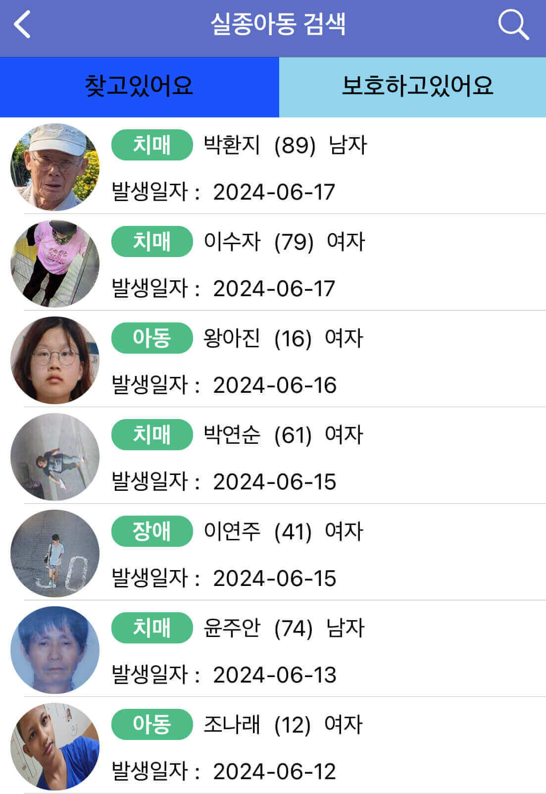 아동만 미아방지 차원에서 등록한다고 생각할 수 있지만 실제로 안전드림어플의 '실종아동 찾기'에 들어가 보면 아동보다는 치매노인, 지적/정신장애인이 대부분이라 실종가능성이 있는 치매환자, 정신 장애인인 가족이 있다면 반드시 사전에 등록을 해두시기 바랍니다. 실종자가 있다면 어디서 어떻게 실종되었는지, 발생장소와 신체 특징등을 자세히 적을 수 있습니다.