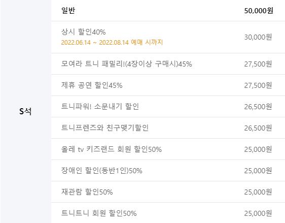 패밀리 45%할인 (R석 33,000원 S석 27,500원)